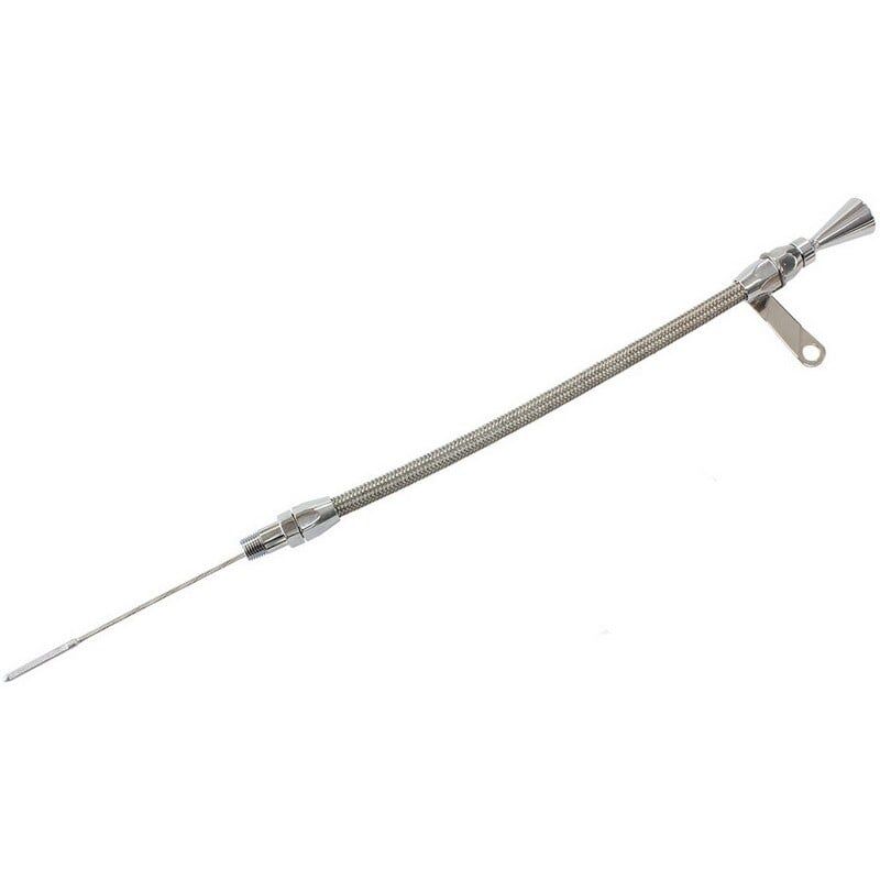 Aeroflow Performance universal engine oil dipstick is designed to work with oil pans that have a built in 1/4" NPT fitting or can be used in any custom application with the use of a 1/4" NPT weld-on. It has an overall length of 20.75" (52.70mm) which can be cut down to suit most custom applications. Just likethe rest of our range of dipsticks it features 308 stainless steel braided covering over PTFE liner, billet handles and the double O-rings for extra security against crankcase gasses escaping. Available in chrome or black anodised.