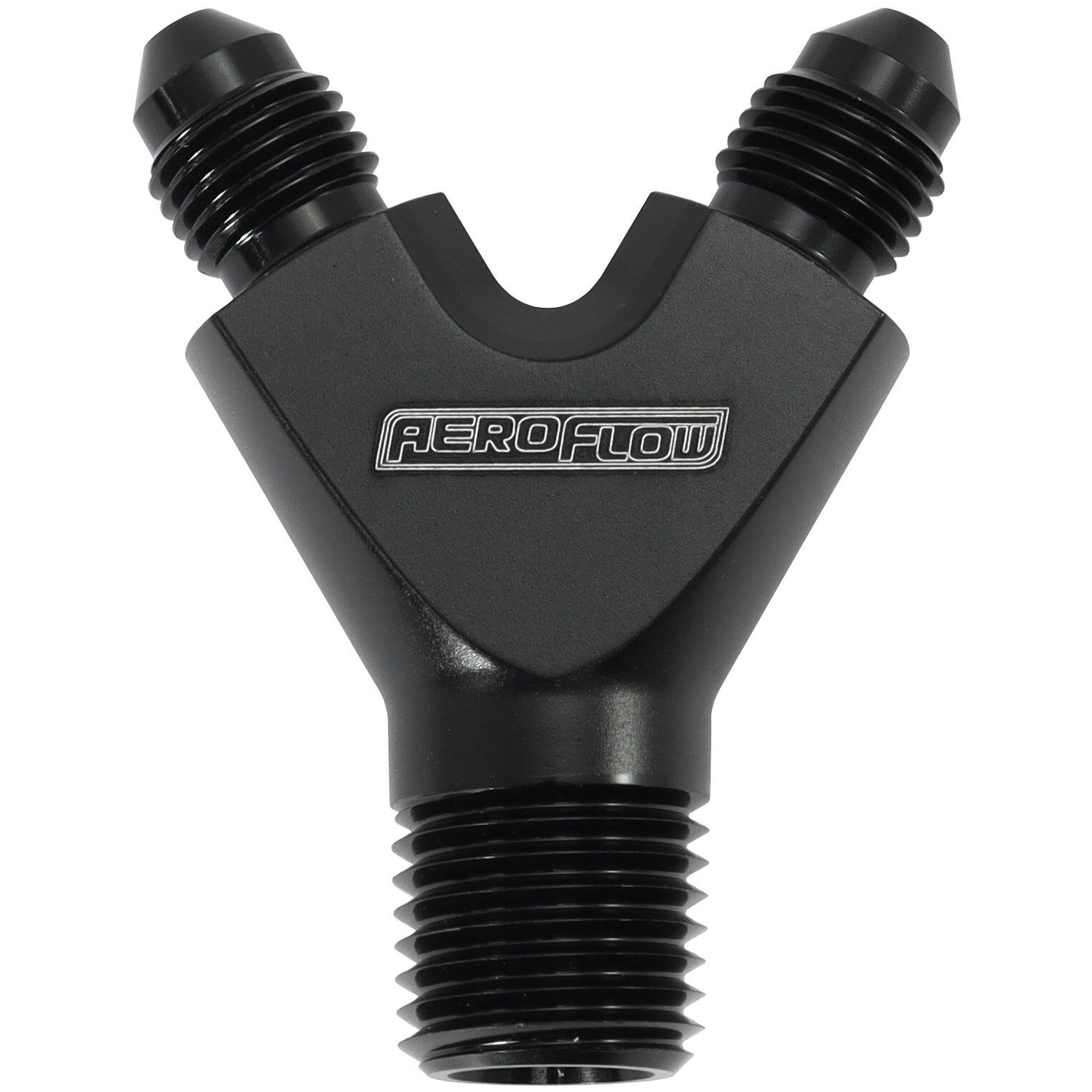 Aeroflow Performance Y block fittings are a good looking and effective way of splitting one line into two. These one-piece design blocks machined from 6061-T6 billet aluminium provide a smooth flow path for all types of fluids. The Y-fittings are available in different AN sizes on one side and NPT on the single inlet. Making thesefittings is ideal for Nitrous lines or Brake lines. Anodizedin either blue, black or silver finishes.