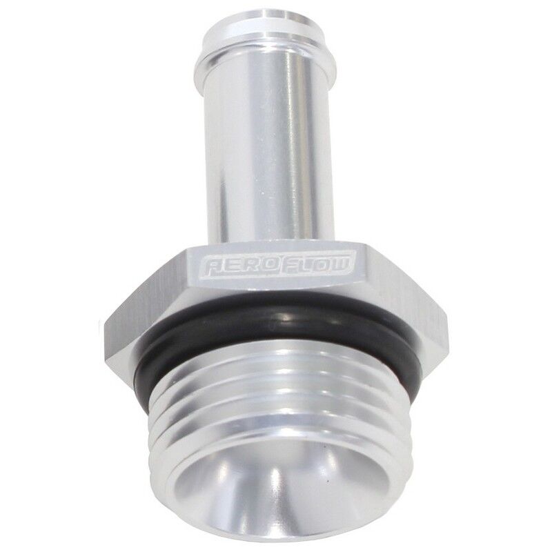 Aeroflow male ORB to straight hose barb fittings are a simple solution to connect a hose to your vehicle. Applications can include fuel, oil, water, vacuum and air. Machined from quality 6061-T6 aluminium. Manufactured to our exact tolerances and utilise male ANORB (O-ring boss) port to screw on to any female threaded AN bung with a straight hose barb to allow a hose to be pushed straight on.