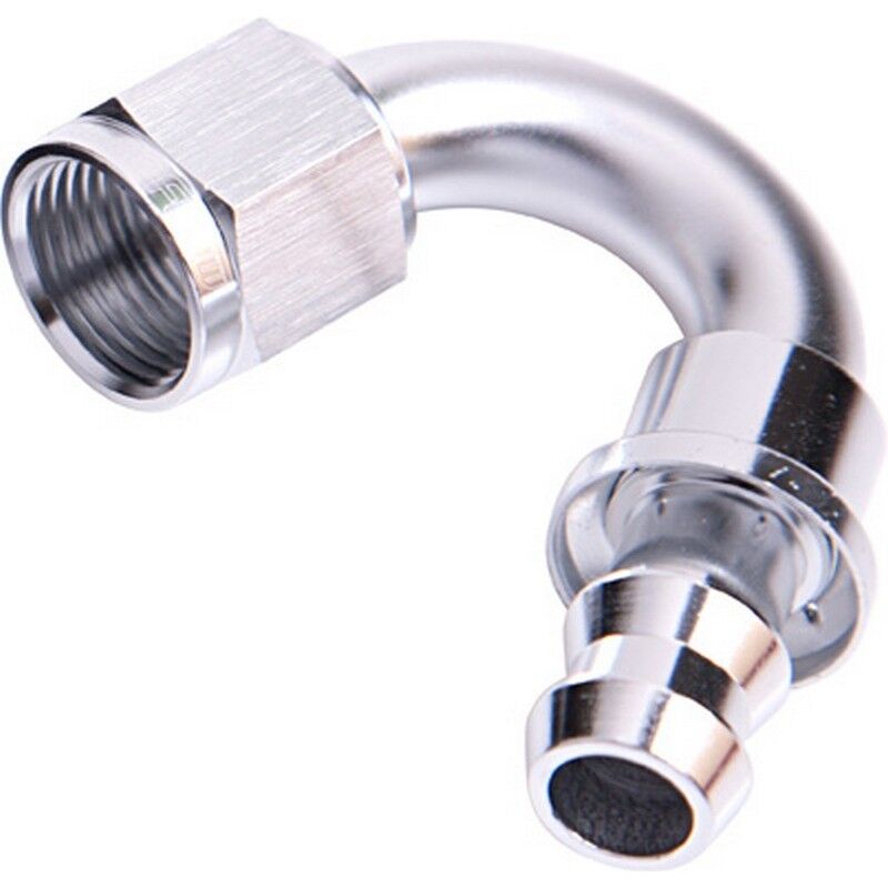 Aeroflow's 400 series push lock fittings are a mandrel bent braised full flow fitting with a custom designed barbed end to allow a quick, easy and leak free assembly. Aeroflow's push lock fittings come with a purpose designed cover to hide the messy cut end of the hose to give you that professional look everytime. Compatible Hose: 400 and 500 Series Push Lock hose (Blue and Black).