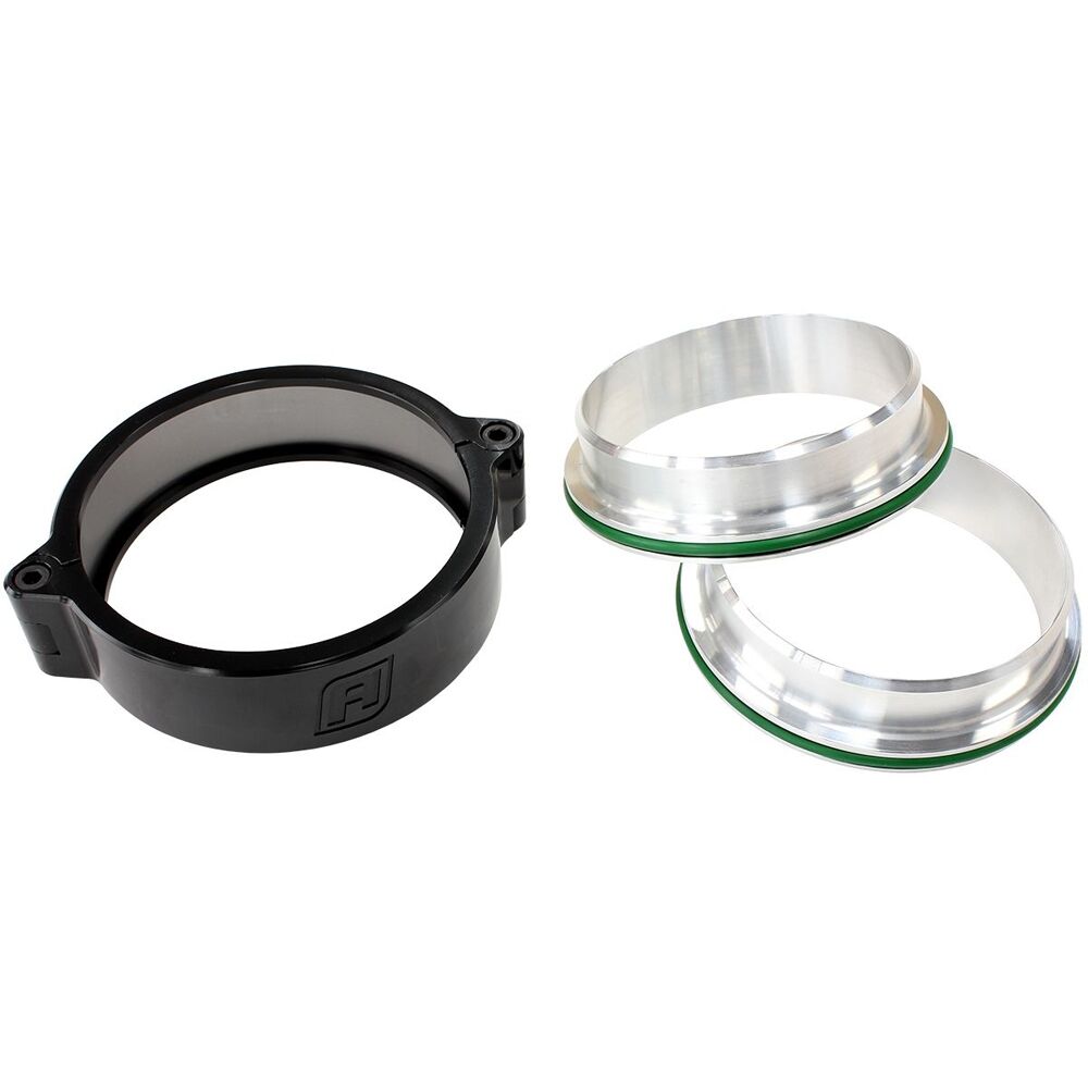 Aeroflow Intercooler Aluminium Pipe Clamps are made from billet 6061-T6 lightweight aluminium. It features a double O-ring grooved sleeve offering absolute sealing with maximum flexibility, so you never have to worry about blowing a pipe off again! Easy bolt together quick release design outer ring which is hard anodised for robustness and wear resistance. The clamps are designed for all types of applications including turbo piping, intercooler piping, cold air intakes and custom applications.