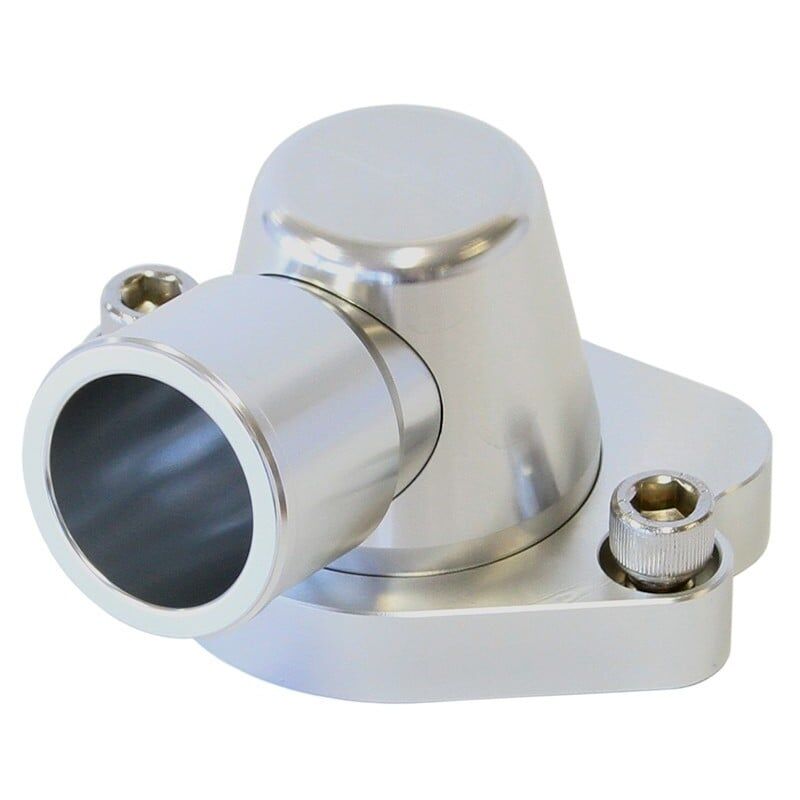 The Aeroflow Performance billet thermostat housings area three-piece design that allows for correct positioningof the outlet to suit a large array for applications especially in conversions where small can be an issue. Machined from T6-6061 billet aluminium and allows for a full 360-degree swivel rotation for ease of installation. All Aeroflow Performance thermostat housings feature an O-ring base flange, as opposed to using the factory paper style gasket, this ensured a superior leak free seal. Each thermostat housing outlet can be untreated exposing a female1-1/4”-20 thread to adapt a AN fitting or a largerbarb fitting for custom applications. Available in several anodised finishes.