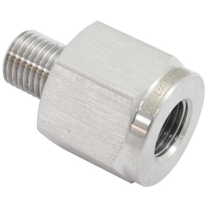 This reducer from Aeroflow Performance has been specifically designed to suit the majority of aftermarket tandem brake master cylinders that are available on the market today. Such as Aeroflowbrake master cylinders and Wilwood. Featuring a 3/8"-24 male thread with a female inverted flare M10 x 1.00mm to accept our dual seat fitting adapter AF344-03 (sold separatley). Made from stainless steel material and sold individually.