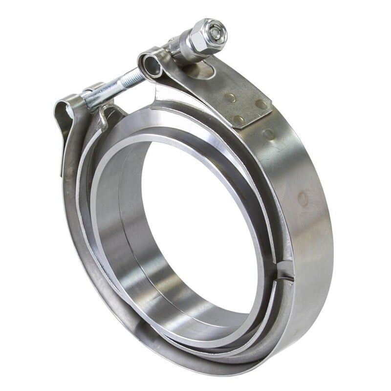 Aeroflow Performance V-Bandkits make it easy to install and remove exhaust systems andturbo parts. The self-aligningV design weld flanges have been designed with a male to female connection which not only helps align the bands butalso provides multiple sealingsurfaces which prevent leaks and warping. These self-aligning V band exhaust clamps are uniquely designed to help keep your exhaust system operating properly and,even more importantly, allow you to disassemble your systemfor service or to repair othersystems on your vehicle.