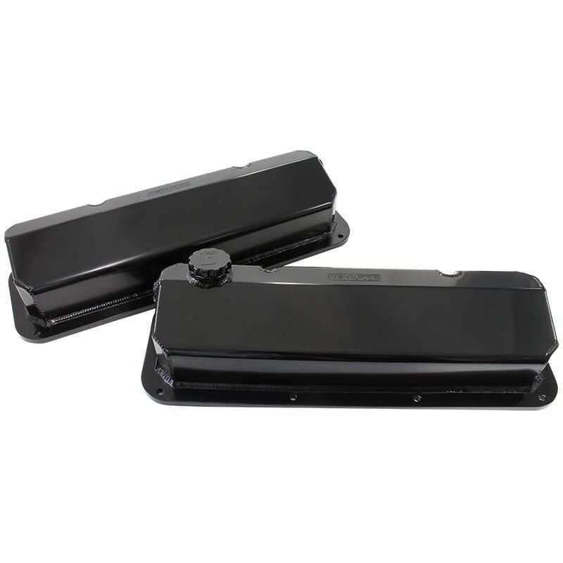Aeroflow’s FabricatedRocker Covers are made from 5051 aluminium. They have a one-piece billet rail CNC machined from 6061-T6 aluminium to guarantee a precision flat surface for superior sealing. They come ineither polished or black anodised finished. The covers come standard with a female -8ORB (some are available with -12) for breather applicationsand a threaded o-ringed billetoil filler cap. All covers aretall enough to clear 99% of rocker combinations.