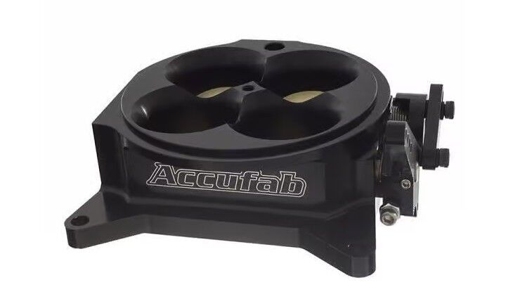 The is a great street/strip 4150 throttle body. It bolts up to many intake manifolds, and flows more air than most 4500 carburetors. Accufab’s 4150 flows 1215 CFM and has four 1-3/4″ brass  plates.