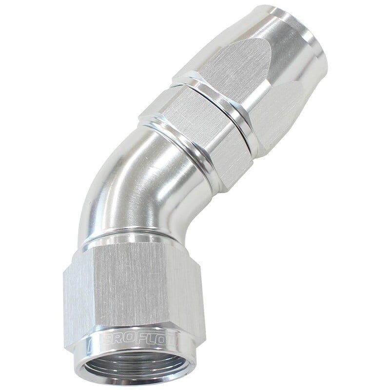 Aeroflow's 570 Series PTFE fittings are a CNC machined one piece fitting which provides uninterrupted flow. The purpose designed olive compresses into the PTFE (Teflon®) inner tube for easy, leak free assembly. The mandrel bent tight radius body has superior wall thickness and a swivel head allowing for easy adjustment. Aeroflow's 570 series fittings are the choice of professionals for use in power steering, automatic transmission, nitrous, fuel systems, cooling systems, vacuum applications, oil systems, brake and clutch lines. Compatible Hose: 200 Series Stainless Steel braid and 250 Series Nylon braid PTFE (Teflon®) hose.