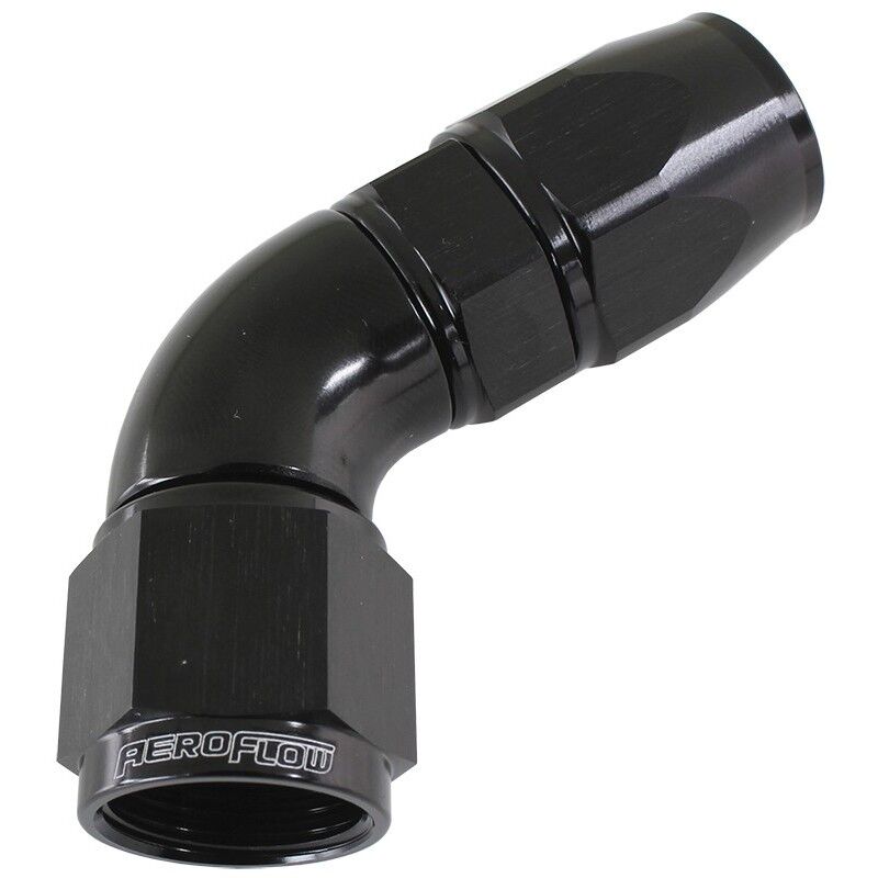 Aeroflow's 570 Series PTFE fittings are a CNC machined one piece fitting which provides uninterrupted flow. The purpose designed olive compresses into the PTFE (Teflon®) inner tube for easy, leak free assembly. The mandrel bent tight radius body has superior wall thickness and a swivel head allowing for easy adjustment. Aeroflow's 570 series fittings are the choice of professionals for use in power steering, automatic transmission, nitrous, fuel systems, cooling systems, vacuum applications, oil systems, brake and clutch lines. Compatible Hose: 200 Series Stainless Steel braid and 250 Series Nylon braid PTFE (Teflon®) hose.