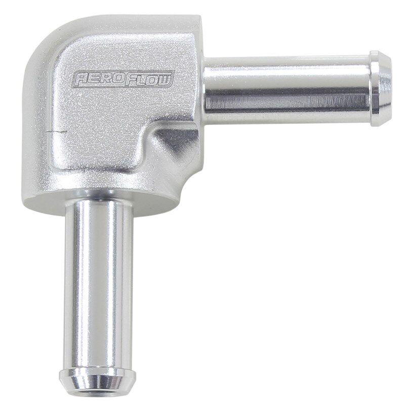 These 90-degree hose barb to hose barb fittings are ideal for general plumbing applications using traditionalrubber hose. They have a 90-degree elbow shape for connecting hose to hose at an angle. This is great for a fixed tight angle connection between rubber hose when it cannot bend without kinking the hose itself.  They come in sizes from 5/16”(7.94mm) up to 3/4” (19mm) and three colours Blue,Black and Silver.