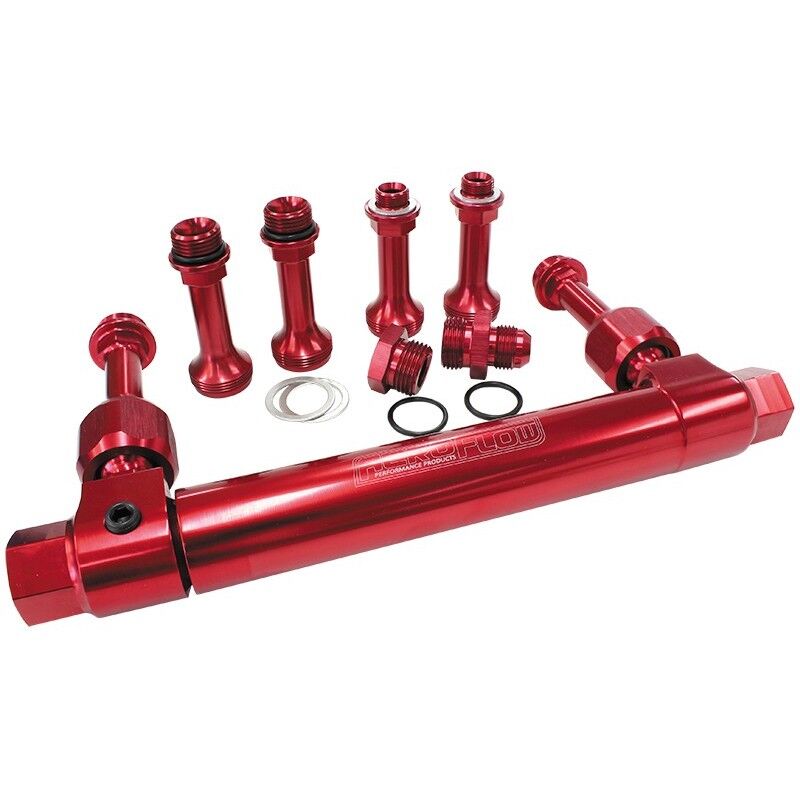 Aeroflow's Fuel Log features ball and socket assemblies that swivel / - 20 degrees, allowing additional clearance for throttle stops, nitrous plates and other accessories. The telescopic log will fit 4150 style carburettors, 4500 series Dominator, Ultra HP and Barry Grant carburettors. The Fuel Log has one AN Flare Plug and a male -8AN male flare fitting supplied for front or rear entry setup.