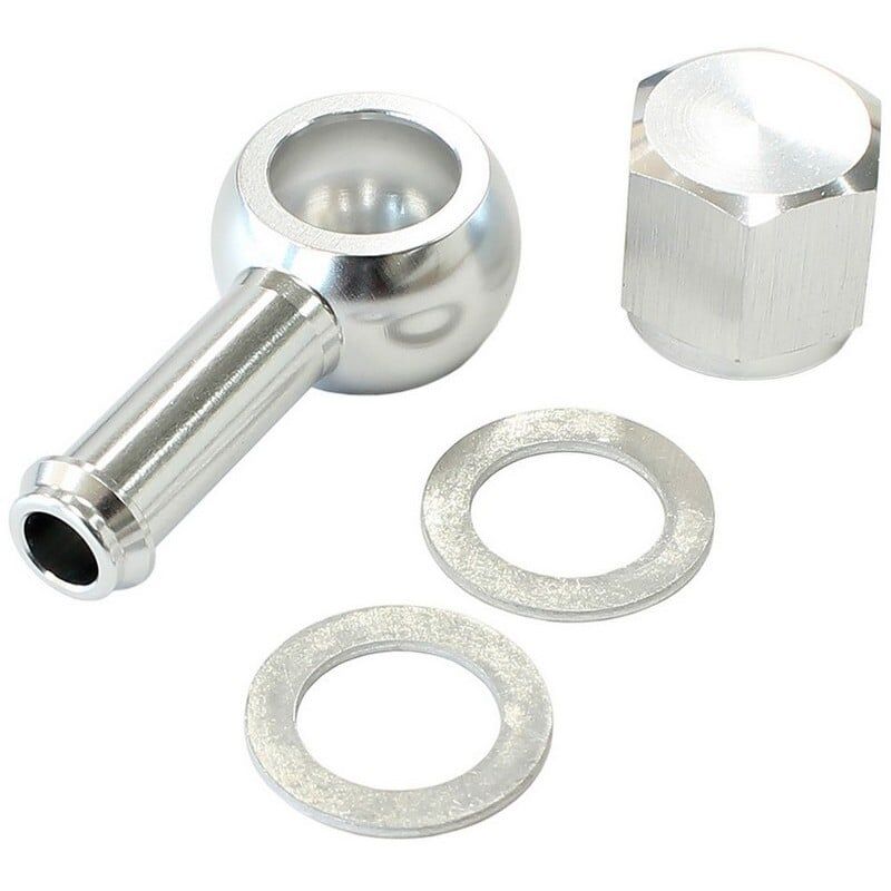 This banjo kit from Aeroflow offers a great cost-effective solution when fitting a Aeroflow 49-1014 or Bosch 044 style of fuel pump to your vehicle. It retains the one-way check valve that is included when you purchase this fuel pump brand new. It will allow you to run either a AN or hose barb from the inlet of the fuel pump at 90 degrees. This is a great way for those tight spaces or under car installations. Manufactured from 6061-T6 billet aluminium and available in blue, black and silver anodised finishes. Each banjo kit comes complete with banjo, cap end and washers.