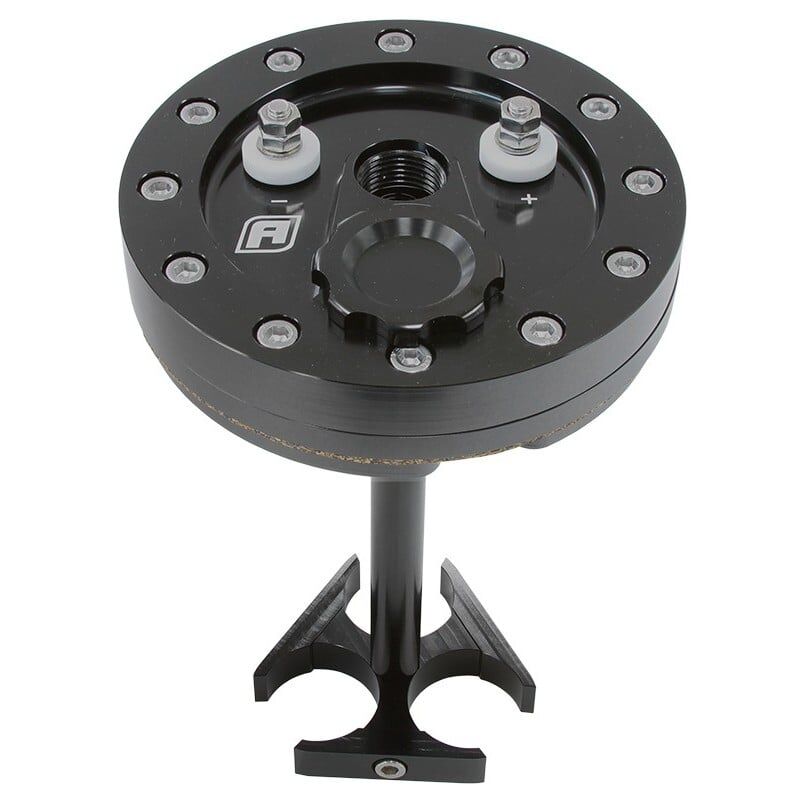 Now you can upgrade your fuel delivery system without having to replace or customiseyour fuel cell. Aeroflow has developed a triple pump hangerthat replaces the standard fuel cell filler cap and is a straight bolt in item. The billet hanger has a built in fuel cap and has the ability to mount one, two or three AF49-1041 EFI fuel pumps or any 39mm (1-17/32") diameter fuel pumps. CNC machined from billet 6061-T6 aluminium with a black anodized option for maximum durability and corrosion protection against E85/Methanol.