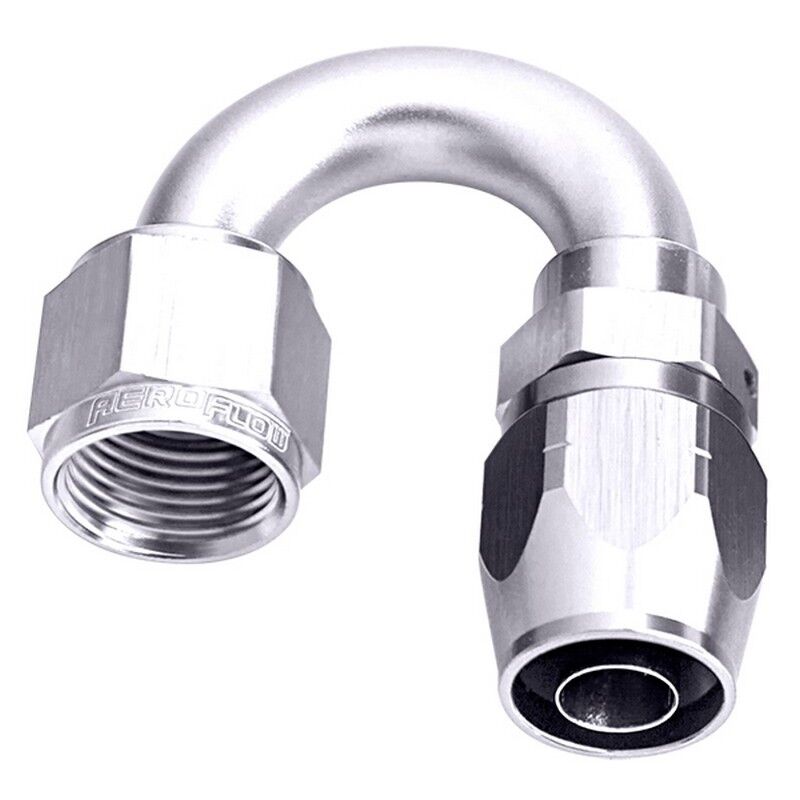 Aeroflow's 500 series cutter fittings are a braised full flow fitting. The billet cutter end separates the wire braid for maximum hose retention, sealing the hose for a second time, which provides a greater sealing area for strength and easier assembly. All angles are mandrel bent, eliminating sharp changes in direction for optimum flow. Aeroflow's 500 Series fittings have a swivel head to allow for easy adjustment making them an excellent choice for the automotive enthusiast for use in fuel systems, cooling systems, vacuum applications and oil systems. Compatible hose: 100 Series S/S braid, 450 Series Lightweight Nylon braid.
