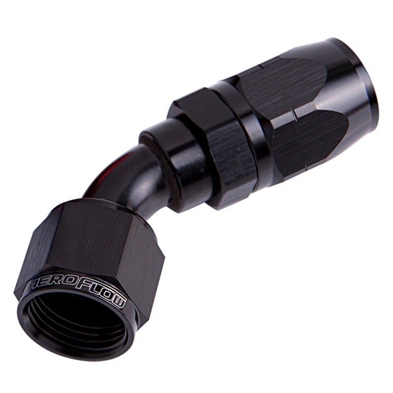 Aeroflow's 500 series cutter fittings are a braised full flow fitting. The billet cutter end separates the wire braid for maximum hose retention, sealing the hose for a second time, which provides a greater sealing area for strength and easier assembly. All angles are mandrel bent, eliminating sharp changes in direction for optimum flow. Aeroflow's 500 Series fittings have a swivel head to allow for easy adjustment making them an excellent choice for the automotive enthusiast for use in fuel systems, cooling systems, vacuum applications and oil systems. Compatible hose: 100 Series S/S braid, 450 Series Lightweight Nylon braid.