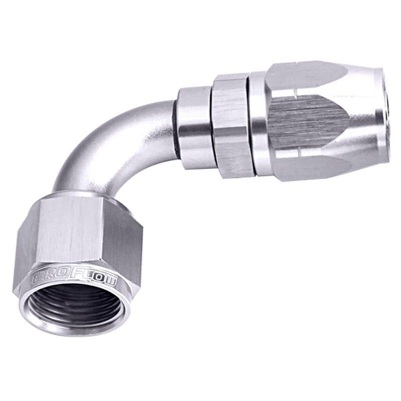 Aeroflow's 500 series cutter fittings are a braised full flow fitting. The billet cutter end separates the wire braid for maximum hose retention, sealing the hose for a second time, which provides a greater sealing area for strength and easier assembly. All angles are mandrel bent, eliminating sharp changes in direction for optimum flow. Aeroflow's 500 Series fittings have a swivel head to allow for easy adjustment making them an excellent choice for the automotive enthusiast for use in fuel systems, cooling systems, vacuum applications and oil systems. Compatible hose: 100 Series S/S braid, 450 Series Lightweight Nylon braid.