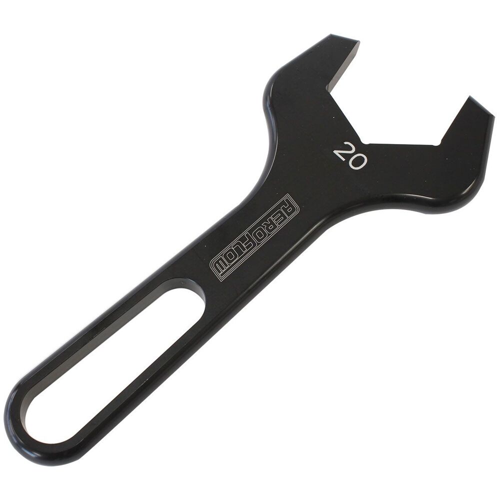 The Aeroflow Pro AN Spanner / Wrench is perfect for all hose end assemblies and adapter fittings, providing a perfect fit so they won't mark your fittings. They are slimline enough to get into all corners of tight spacers. All aluminium spanners are hard anodized black and size stamped. These single ended spanners are designed to suit B nuts of -20AN fittings. Recommended to also use in conjunction with the Aeroflow Performance adjustable wrenches or vice jaws to install braided hose to fittings. Also available in a complete kit with a Pro Spanner roll up bag for protection.