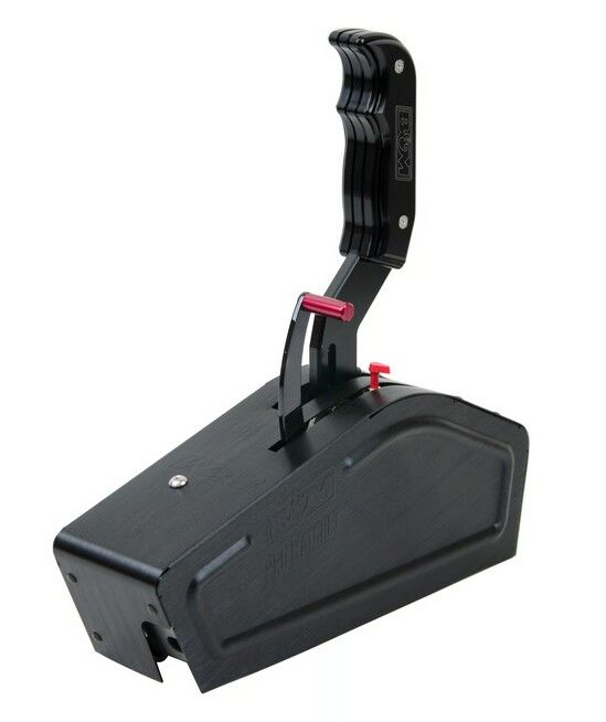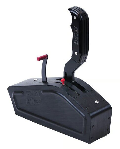 One of B&M’s easiest race shifters to drive, the Stealth Pro Ratchet self-centers after each pull so you can’t over-shift a gear, and integrates a one-hand reverse lockout meeting NHRA/IHRA rules. It includes a neutral safety switch, backup-light switch, a simulated carbon-fiber hydro-dipped aluminum cover for a high-tech look, and the tough black-anodized Magnum Grip handle with replaceable plates. A 5-ft Super-Duty cable, brackets, levers, gear indicator, and hardware are included for popular Chrysler, Ford, and GM transmissions; install kits may be required. Overall: 10.75 x 2.9 x 12 in.