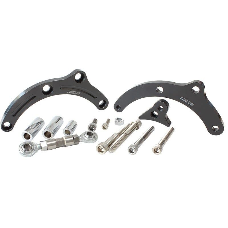 These alternator brackets are made from 6061 T6 billet aluminium and are designed to suit Big Block Chevy V8s with a Low-Mounted alternator on the left hand side (AustralianPassenger Side) of the motor and the "Short" Water pump.