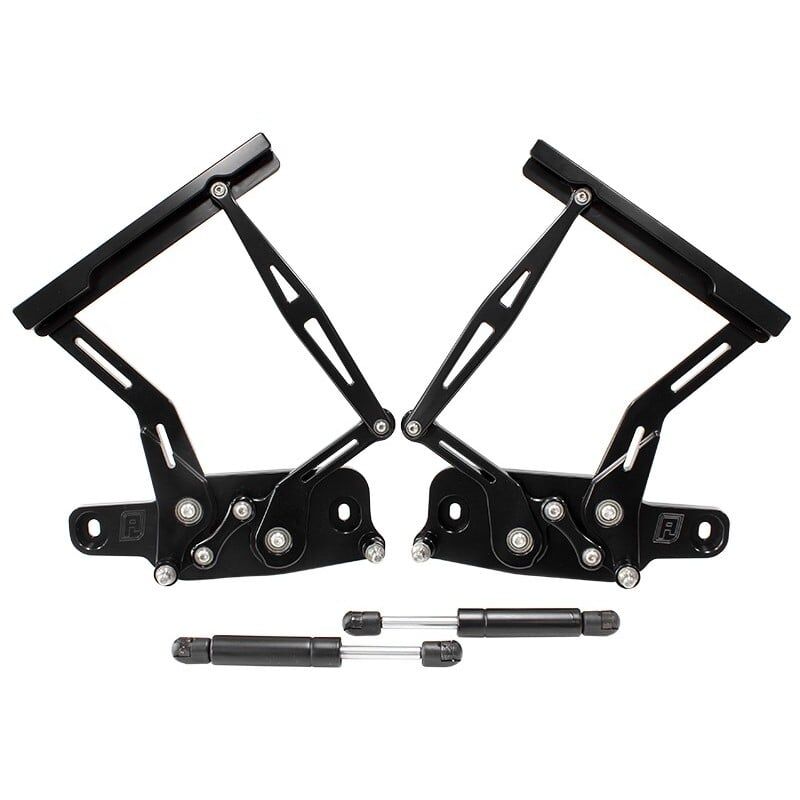 Aeroflow Billet bonnet hinges are designed and tested in Australia and are machined from 6061-T6 aluminium. You bolt the hinges into the OEM mounts then adjust for final fitment. Quality ball bearing joints and mounting bolts included.