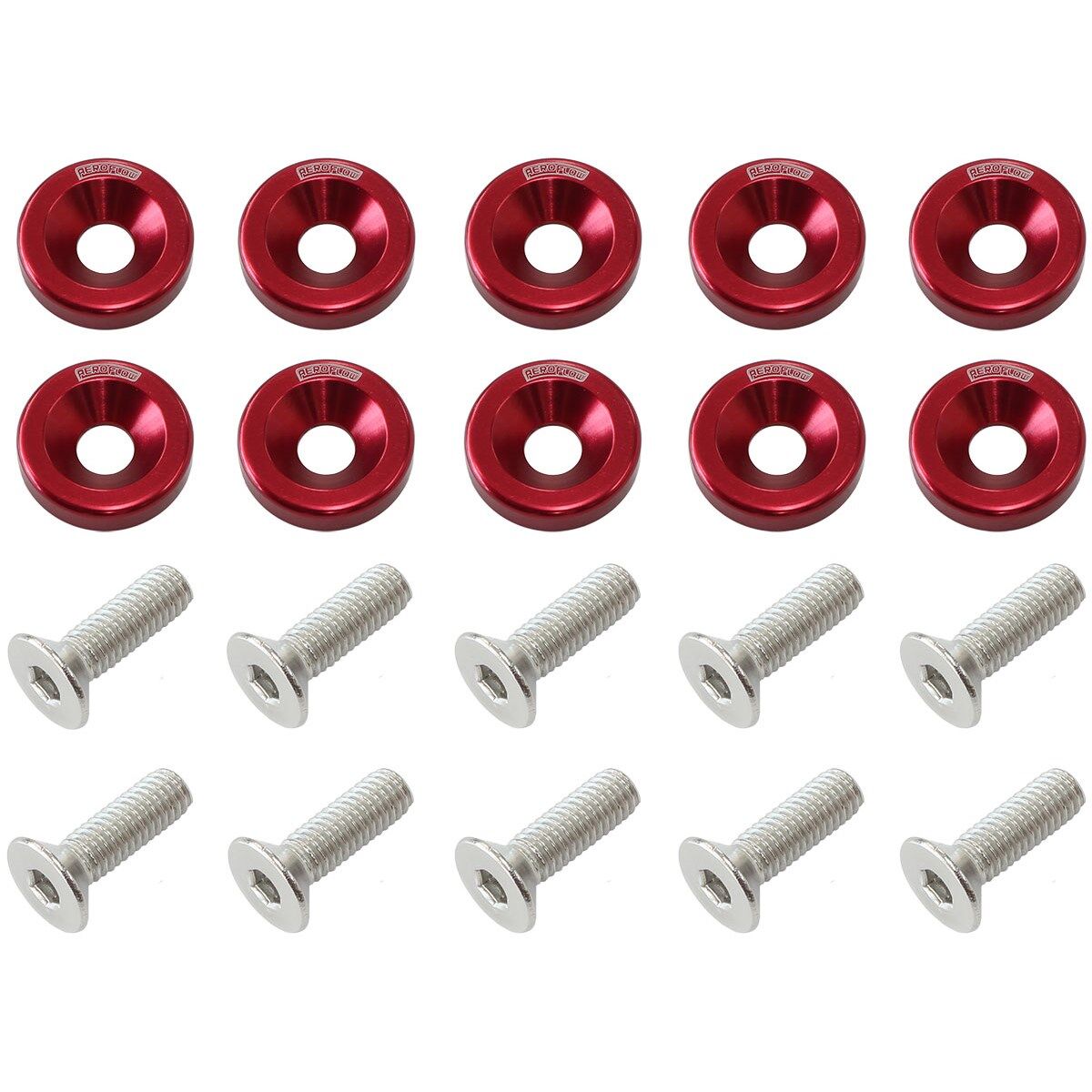 Add that last finishing touches to your engine bay with these all new Aeroflow Performance billet dress up bolts. Available in anodized Black, Blue, Gold, Purple, Redand Silver. These fender washers are constructed from aircraft grade aluminium and are matched up with long lasting stainless steel bolts.Using a thread size of M8 x 1.25mm and under head length of 20mm makes them perfect forany application in the engine bay of all Japanese domestic import vehicles.