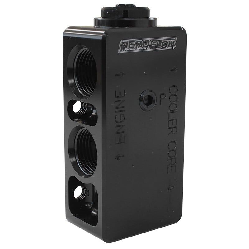 Perfect for use with Aeroflow oil coolers, this Billet Aluminium thermostat helps maintain engine oil temperature by holding the oiluntil it reaches operating temperature at (82°C) 180°F when the thermostat is fully open to allow full flow to the oil cooler. It will self-adjust flow according to the oil temperature to maintain a constant operating oil temperature just like a coolant thermostat would operate.