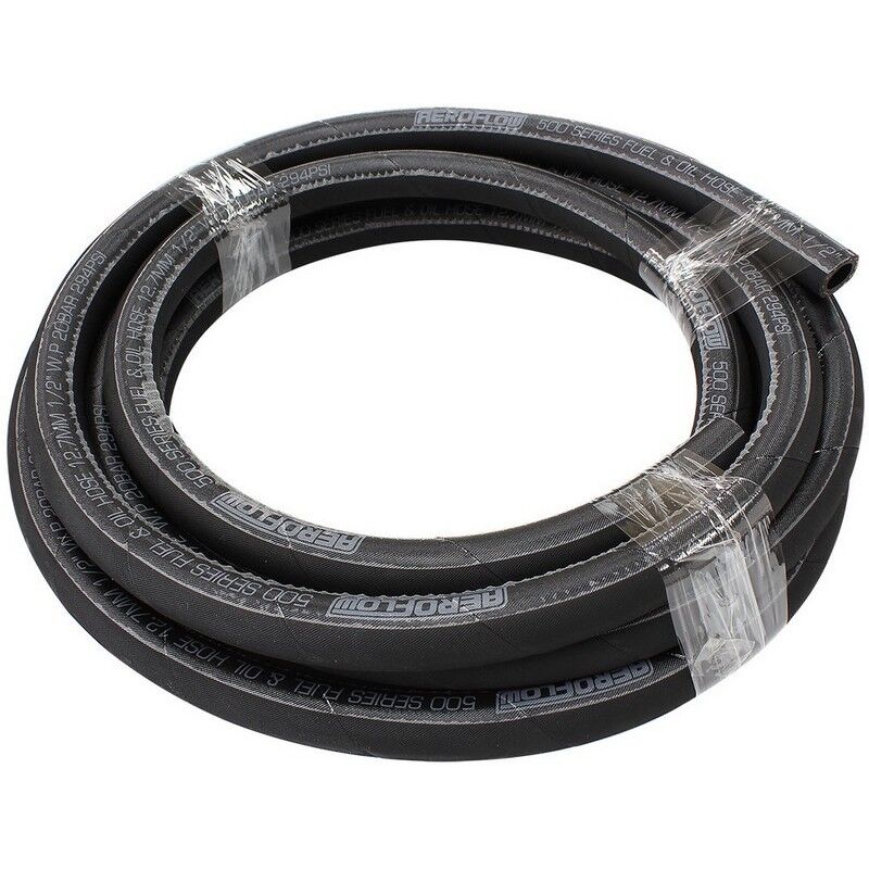 Aeroflow 500 series push lock hose is designed for the use with our push-on fittings. Available in black ONLY. Constructed from an outside layer of chlorinated polyethylene (CPE). This withstands higher temperatures and better weather resistance with an oil resistant, tough textured outer cover. Nylon reinforced to provide strength whilst keeping the flexibility in the hose. Approved for use with leaded and unleaded gasoline, diesel and gasoline blends of ethanol (E85), methanol, petroleum oils, lubricants, coolant systems, low pressure brake / clutch reservoirs line, low pressure power steering lines and transmission cooler lines.