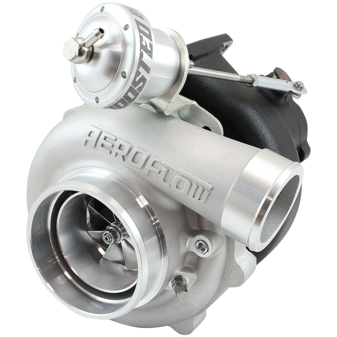 Aeroflow Performance Boosted turbochargers are designed specifically for the enthusiast who wants optimal performance at a competitive price. Boosted Turbochargers have a range of specific turbos to meet your power goals, driving style and budget. Boosted turbocharger's utilise billet compressor wheels and feature the latest aerodynamic design that maximises horsepower and boost response throughout the rev range. The turbine wheel is constructed from Inconel, a Super Alloy that maintains strength during prolonged exposure to extremely high exhaust gas temperatures.