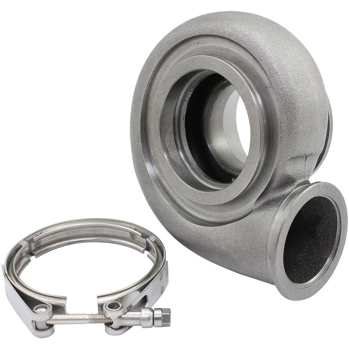 Aeroflow Performance offersa variety of replacement turbine rear housings for their entire range for Boostedseries turbochargers. You can choose to option for a smalleror larger A/R ratio. This willallow you to fine tune depending on your application for engine configuration and driving conditions. Available in many different turbine inlet and outlet flanges to fit most exhaust manifolds such as T25/T28, T3, T4 ,T6 and V-Band and Exhaust downpipes such as 5 bolt and V-band. Turbine housings can be replaced on most turbos easily via mounting bolts or V-bands and a few minutes of time. They can be clocked 360 degrees to just about any position needed.