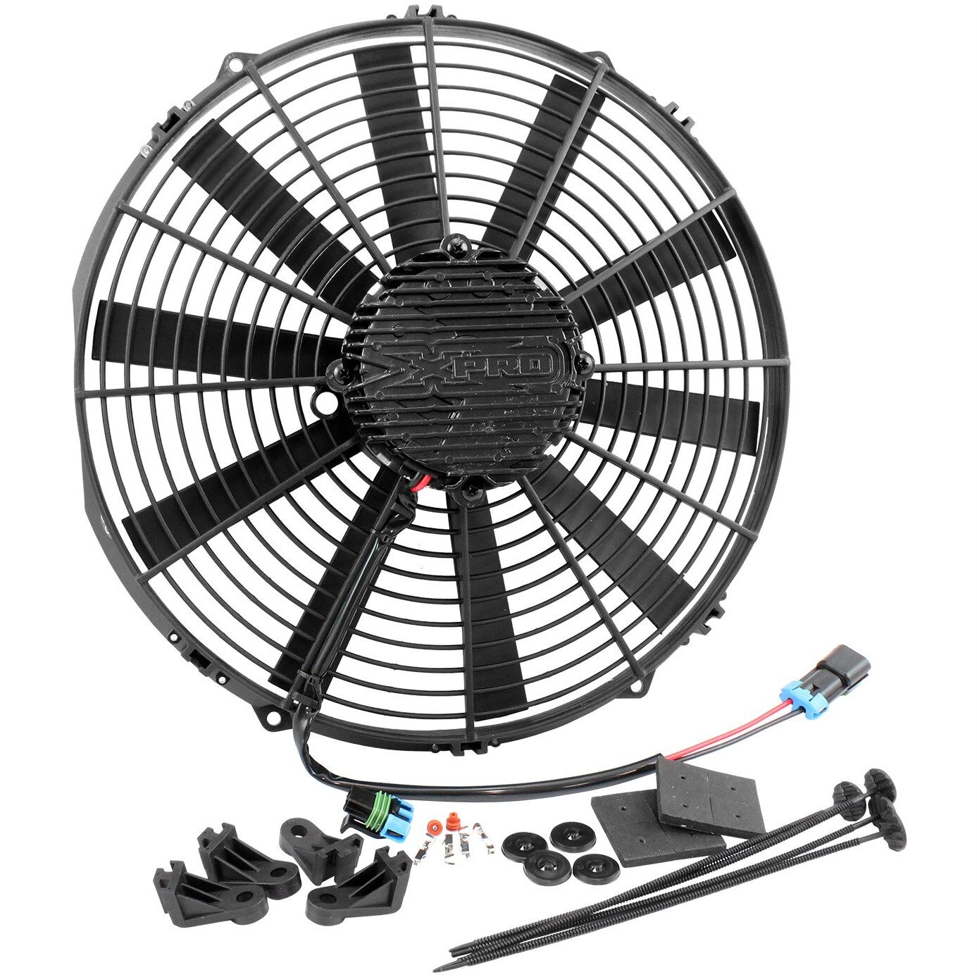 The Aeroflow Performance universal brushless electric fans are suitable for both A/C condenser, radiator cooling or can be mounted to any fluid cooler. These fans provide an increase in air flow with less amp draw, compared to our regular electric fans. This makes it better for air conditioning performance, cooler engine running, and increased engine power with less load on the electrical system. This brushless fan does not require any specific controllers and just a simple positive (+) and negative (-) wiring with an appropriate automotive relay. It will not work with any variable speed fan controllers but on/off thermostat controllers will work which are sold separately. Designed for 12-volt systems only with a soft start ramp up feature which prevents amp spikes with a fan turning on and off. NOTE: This is strictly a puller fan and is not reversible. All Fans are 3" (80mm) thick including motor.