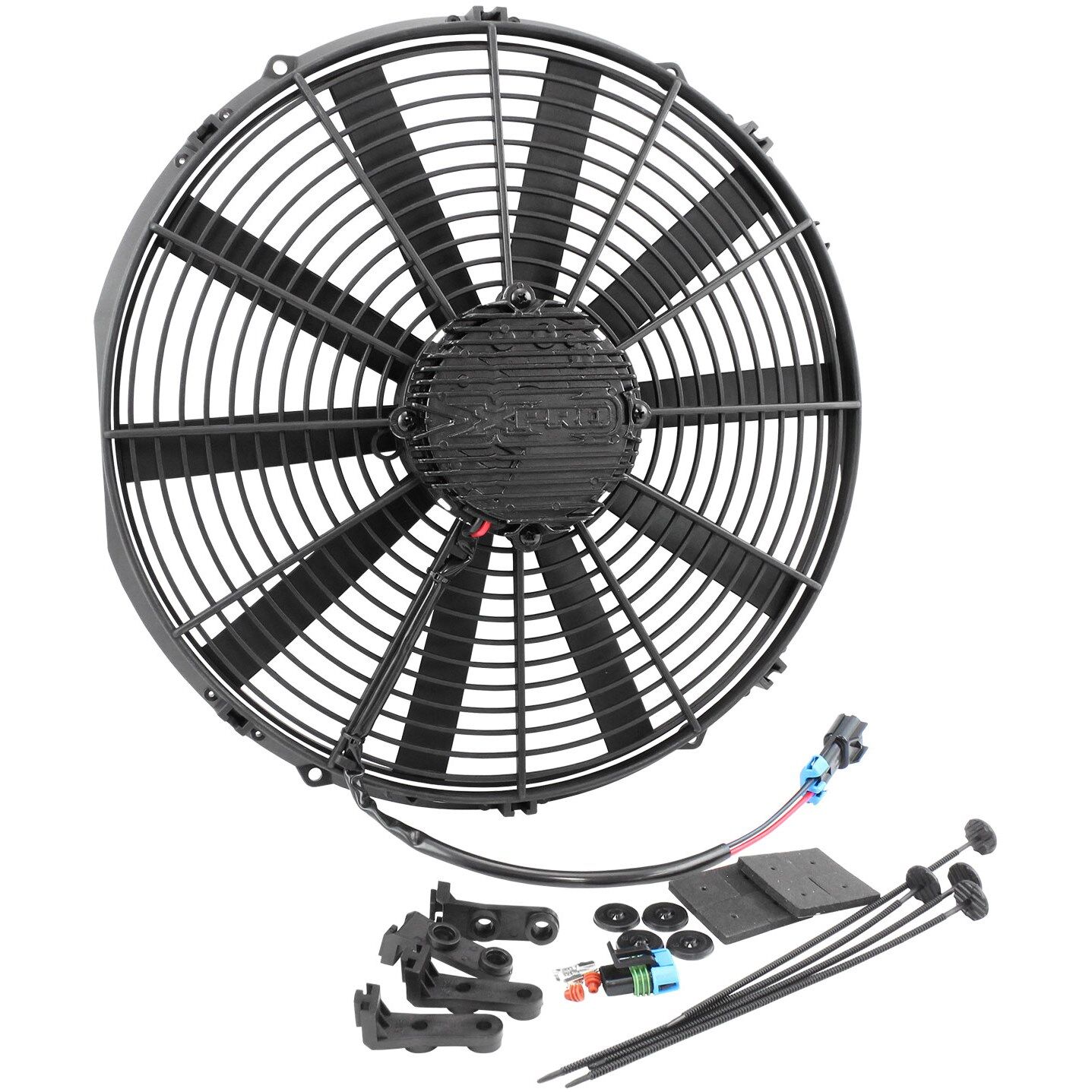 The Aeroflow Performance universal brushless electric fans are suitable for both A/C condenser, radiator cooling or can be mounted to any fluid cooler. These fans provide an increase in air flow with less amp draw, compared to our regular electric fans. This makes it better for air conditioning performance, cooler engine running, and increased engine power with less load on the electrical system. This brushless fan does not require any specific controllers and just a simple positive (+) and negative (-) wiring with an appropriate automotive relay. It will not work with any variable speed fan controllers but on/off thermostat controllers will work which are sold separately. Designed for 12-volt systems only with a soft start ramp up feature which prevents amp spikes with a fan turning on and off. NOTE: This is strictly a puller fan and is not reversible. All Fans are 3" (80mm) thick including motor.