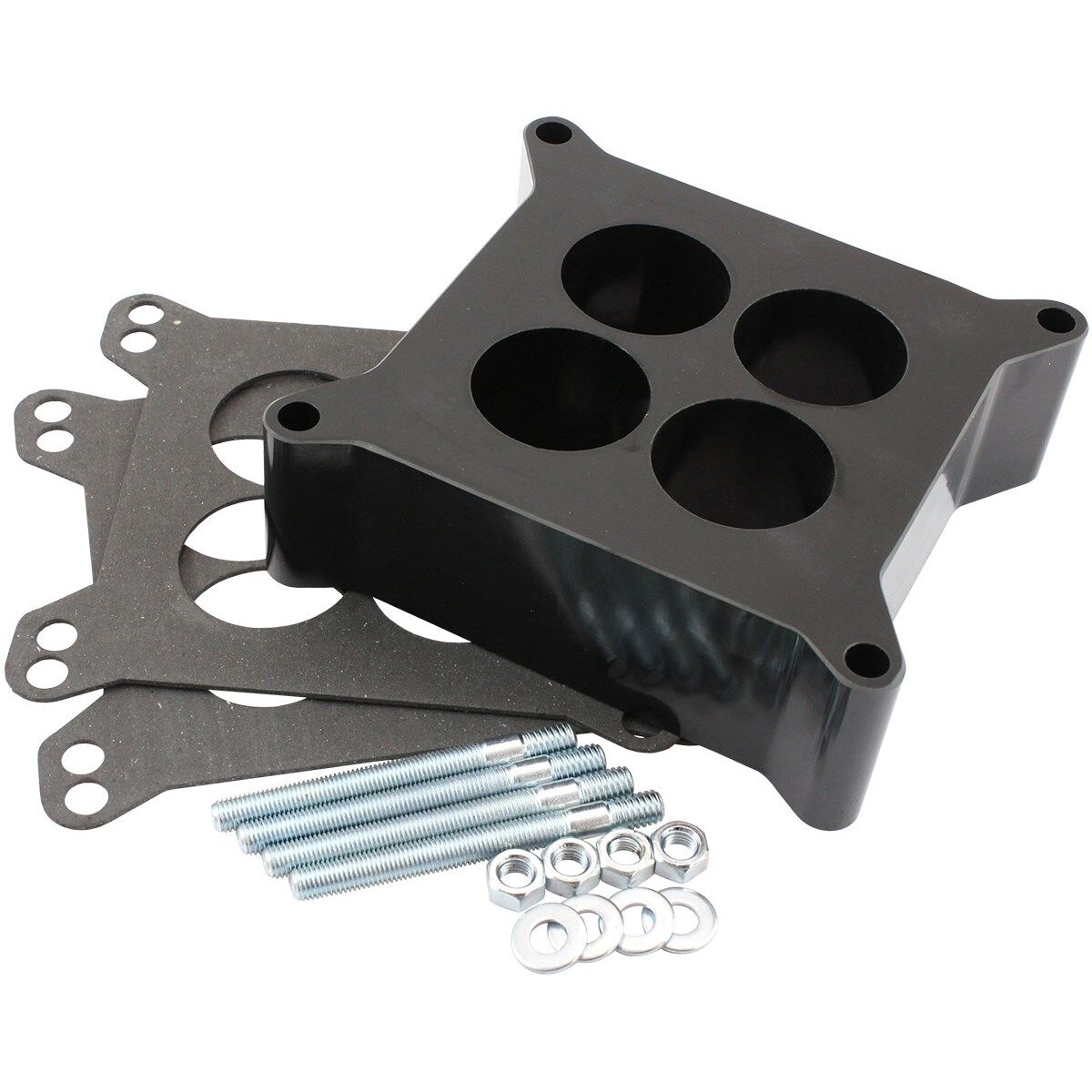 Aeroflow phenolic carburettor spacers improve air/fuel distribution and reduce the fuel temperature for a denser fuel mixture, reduce vapor lock, and add additional plenum volume to increase engine performance. They help with linkage clearance on aftermarket or custom throttle cable setups.
