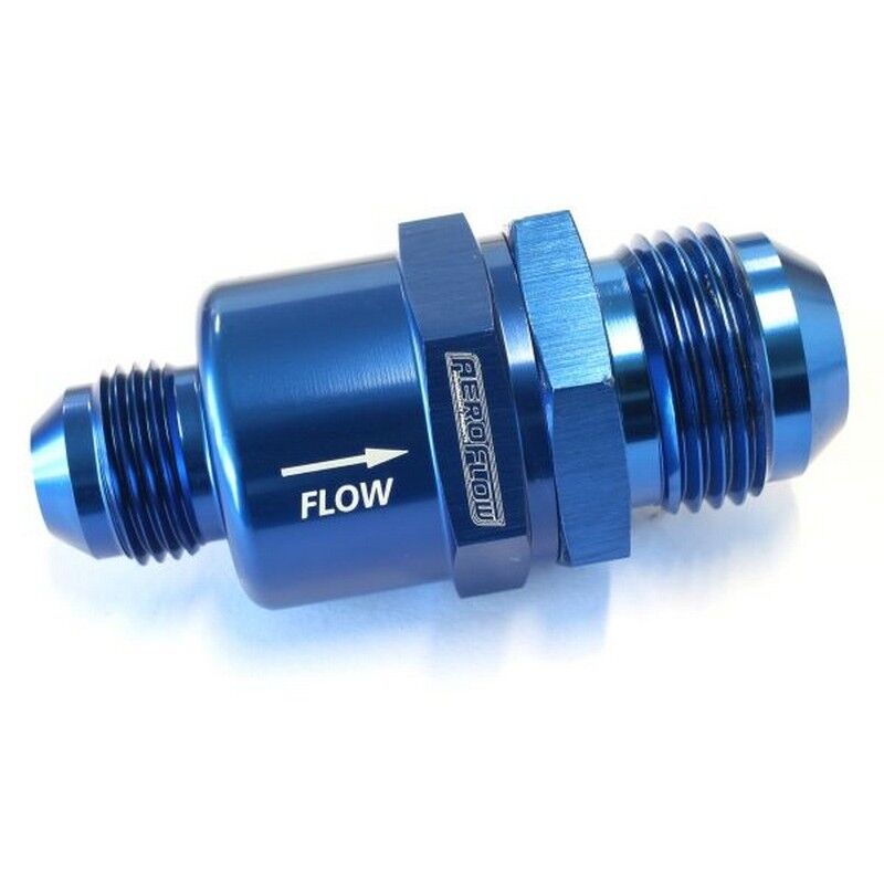 This one way check valve features a Male AN fittings oneither end in sizes ranging from -6 through to -16. The valve comes with a 1.5psi spring installed and there is an optional 5psi spring where required. The length of the valve body is 29mm for the -6 and -8 or 35mm for the -10, 12and -16 unit.