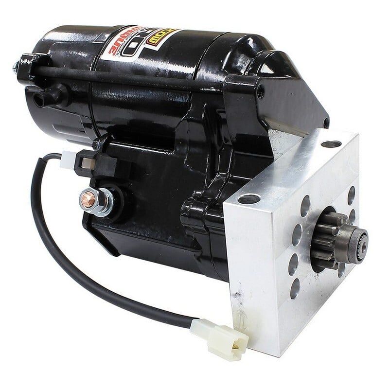 Aeroflow high torque starter motors are serviceableand manufactured from aluminium with a multi-angle mounting block that allows different mounting positions to clear multiple header and oil pan configurations. The 2kw / 2.7hp starter is recommended for 400cu + engines and up to 15:1 compression ratio it utilizes a 2.86:1 gear reduction. It isalso slightly longer in lenght than the 1.9hp starter. Aeroflow starter motors have high heat resistance and are powdercoated black for extra corrosion protection.