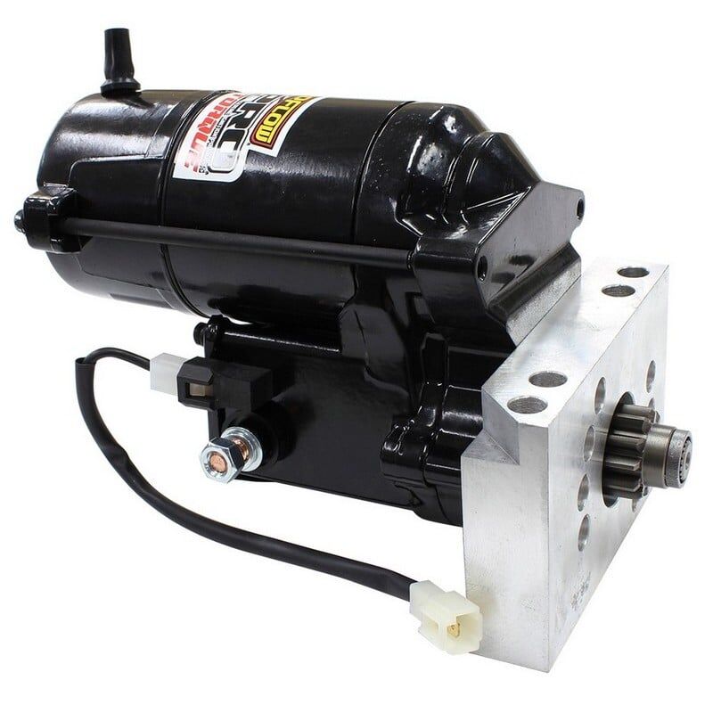 Aeroflow high torque starter motors are serviceableand manufactured from aluminium with a multi-angle mounting block that allows different mounting positions to clear multiple header and oil pan configurations. The 2kw / 2.7hp starter is recommended for 400cu + engines and up to 15:1 compression ratio it utilizes a 2.86:1 gear reduction. It isalso slightly longer in lenght than the 1.9hp starter. Aeroflow starter motors have high heat resistance and are powdercoated black for extra corrosion protection.