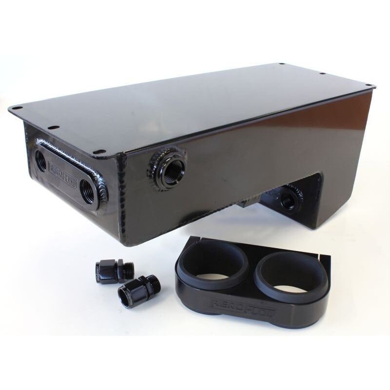 The tank itself is robotically TIG welded with 2.5mm thick aluminium, featuring six female -8 O-ring ports that allow vast variety of adapter fittings to be placed into various positions around the tank if required. NOTE: if not using all ports ensure to block them with fittings (sold separately). The kit includes a billet dual fuel pump holder along with our -8ORB to -8AN adapters designed for external 60mm diameter fuel pumps such as our AF49-1014 or Bosch Motorsport 044 which are Sold Separately.