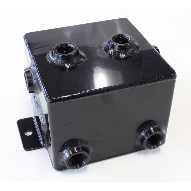 These Aeroflow Performance alloy tanks are designed for universal applications. They can be used for such applications including surge tanks, breather tanks, water tanks, vacuum tanks and many more. They are robotically TIG welded with 2.5mm thick aluminium. The tanks feature eight female -8 O-ring ports that allow vast variety of adapter fittings to be placed into various positions around the tank. NOTE: if not using all ports ensure to block them with fittings (sold separately). This tank has two female -8an O-rings ports located on the top, front and back of tank, also one on each side of the tank above the mounting tabs. This allows multiple locations for plumbing applications.