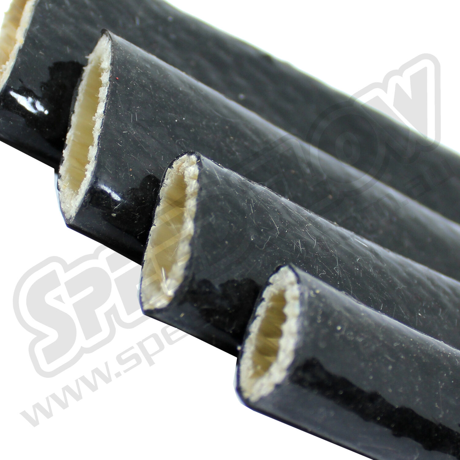 Speedflow’s Firesleeve is manufactured from high bulk braided fibreglass sleeving and coated with a custom compounded black silicone rubber to protect and extend the life of hoses, cables and wires by forming a protective barrier in areas of extreme heat. Speedflow has sized this to fit tightly over our hose but will fit other hoses with similar outside diameters.