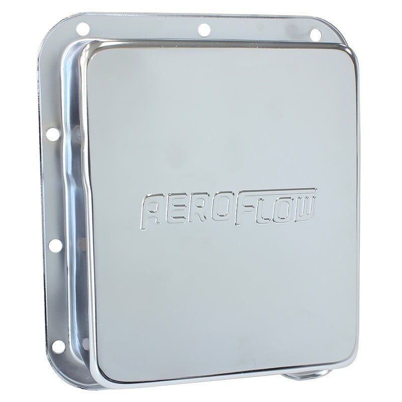 These Aeroflow transmissionpans add a little zing to the undercarriage of any vehicle. The included drain plug makes transmission service a snap. These pans are thicker than stock so you don’t have to worry about leaky pan rails. Available in two great finishes; chrome plated and black electrolysis.