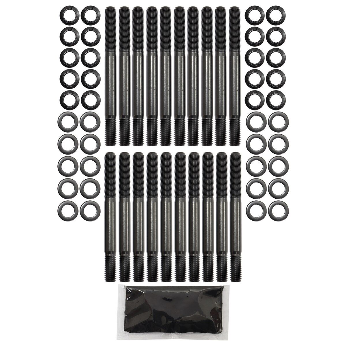 These head studs are manufactured from aircraftquality 8740 high tensile strength chromoly steel and cold-forged to ensure molecular integrity within thestud. Meaning these studs are rated up to 190,000 psi makingthem stronger than Grade 8 andOEM fasteners. All kits come complete with 12-point nuts and hardened washers for an even load distribution and accurate torque readings.