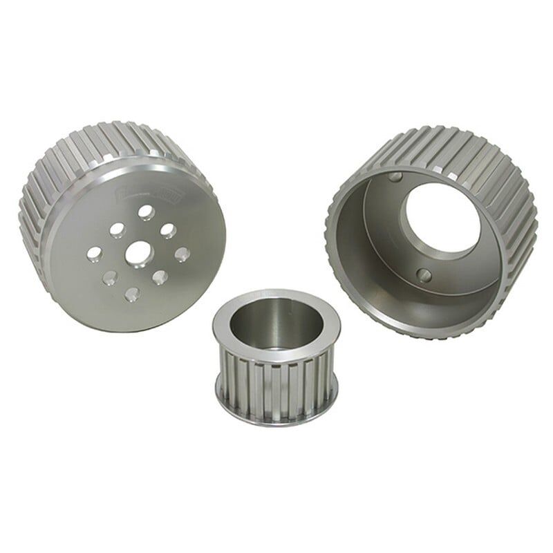 Aeroflow's Industry first 100% complete billet 6061-T6 aluminium Gilmer drive. Hard anodised for case hardness formaximum life of your Gilmer teeth which prevents slippage and torn belts. Complete with all mounting hardware. Gilmer Belts are sold separately.