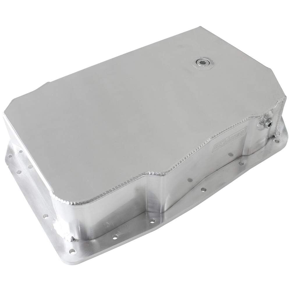 The new Aeroflow deep transmission pans are now available for the GM 6L80 transmission found in late model Commodores. This pan uses a one-piece billet 9.52mm(3/8") thick rail for precise fitment and strength. The deep fabricated aluminium design allows you to carry more oil to help reduce unwanted gearbox temperatures.Aeroflow pans come with dual fittings, 2 x -8 ORB and 1 x 1/4" NPT for optional temperature gauge. -8 ORB magnetic drain plug is included and it is available in both natural and black anodised finishes.