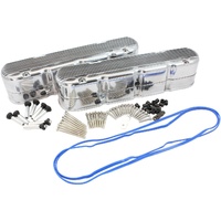 Cast aluminium valve covers are a great way to improve and refine the look of your LS engine, without any radical changes to its configuration. These Aeroflow Performance valve covers are a 2-piece retro finned design. These feature a low, internally baffled LS valve cover base with integrated coil mounts and a retro style finned overcover that hides the ignition coils and wiring harness. It also features a baffled stock-style ventilation set-up with an oil fill cap while also retaining the factory gaskets and bolts. All hardware and spacers for mounting ignition coils and 12-point dress up hardware and rubber grommets for the coil covers are included. Fits all LS engines using both LS1 and LS2 or similar coils.