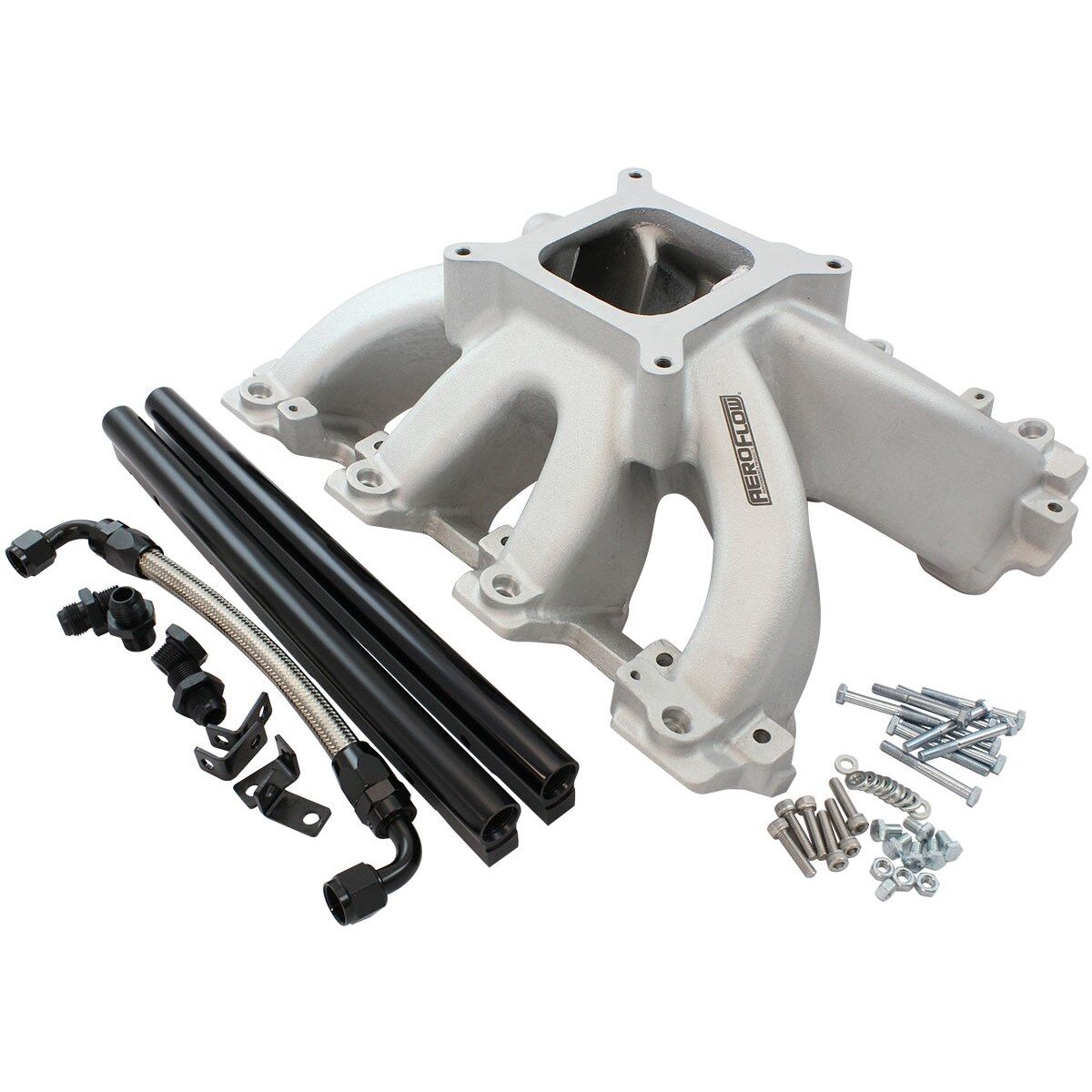 • This intake manifold does not work with factory OEM fuel rails and requires the use of Aeroflow Fuel Rail Kit included (AF6999-5000).