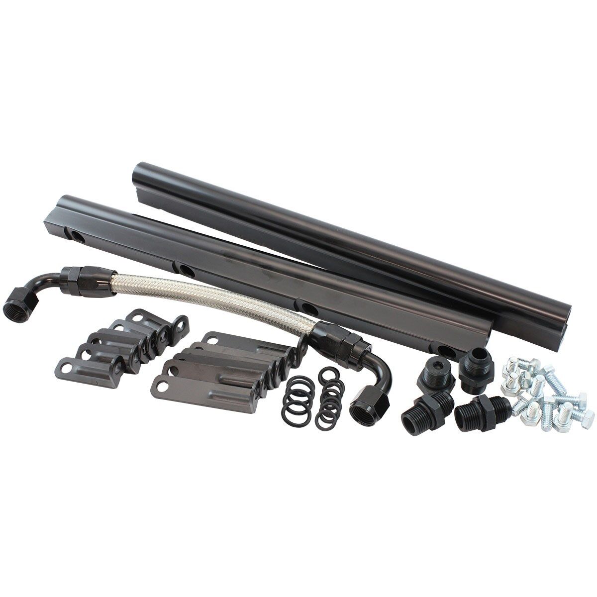 Each fuel railis precision CNC machined fromextruded 6063 aluminium with alarge internal diameter bore with -8ORB ports on each end and anodized black.