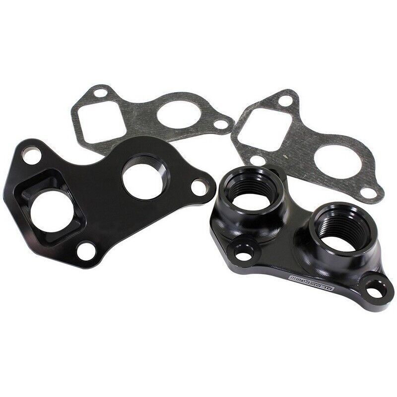 The Aeroflow Performance GM LS water pump adapter plates are designed for cooling systems that employ a remote or radiator mounted water pump. These adapters are the cleanest and simplest way to connect the coolant lines to the engine. These plates are designed to help you connect hoses to your engine block at the spots where the water pump usually bolts on. Featuring 4 x -10ORB ports and manufactured from billet aluminium.