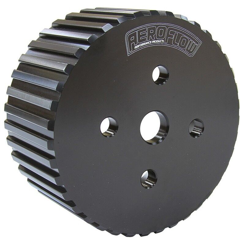 Aeroflow's Industry first 100% complete billet 6061-T6 aluminium Gilmer drive. Hard anodised for case hardness for maximum life of your Gilmer teeth which prevents slippage and torn belts.