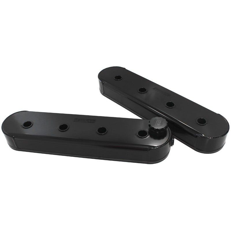 Aeroflow Fabricated Rocker Covers are made completely from exceptional quality aluminium and are lightweight. They have a one-piece billet rail CNC machined from 6061-T6 to guarantee a precision flat surface for superior sealing. They come in either raw or black anodised finished. The covers come with a female -8 ORB for breather applications and a threaded o-ringed billet oil filler cap. All covers are tall enough to clear 99% of rocker combinations.