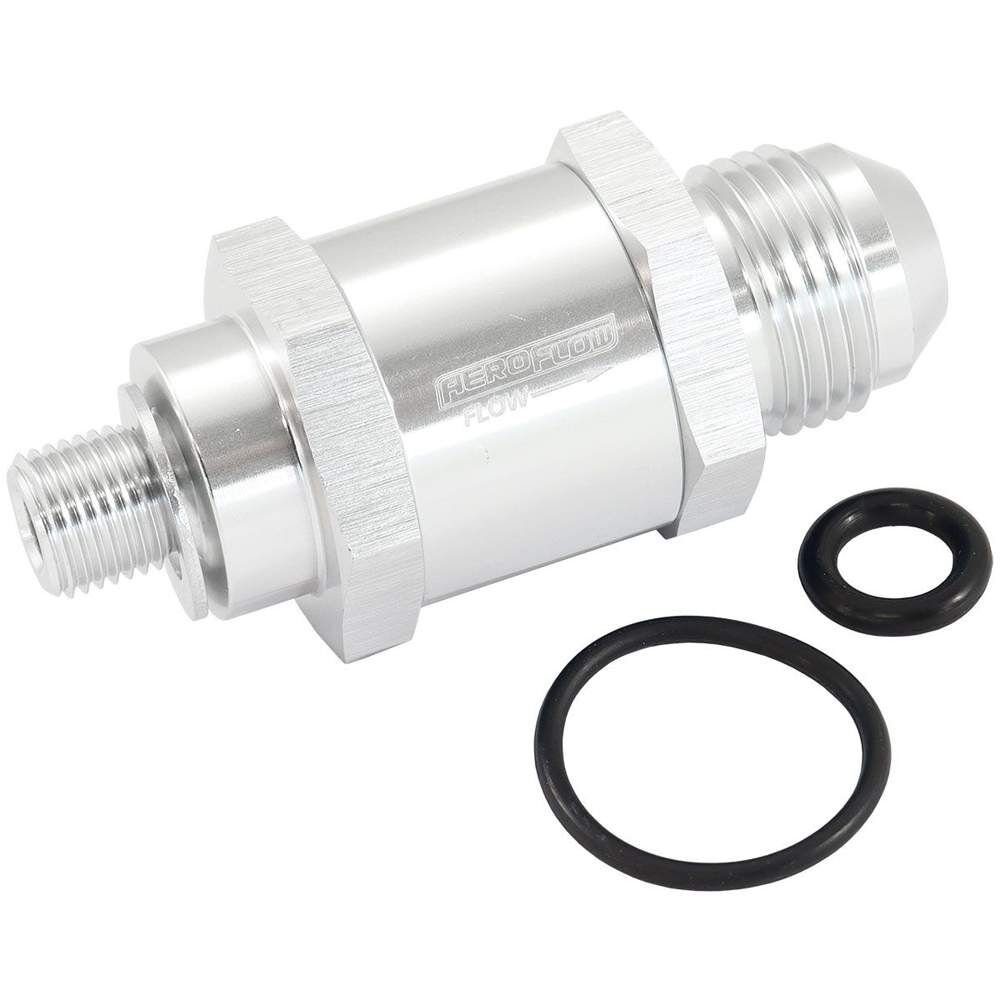 This CNC machined check valve screws directly into theBosch 200 EFI fuel pump to hold line pressure and extend the life of the pump.