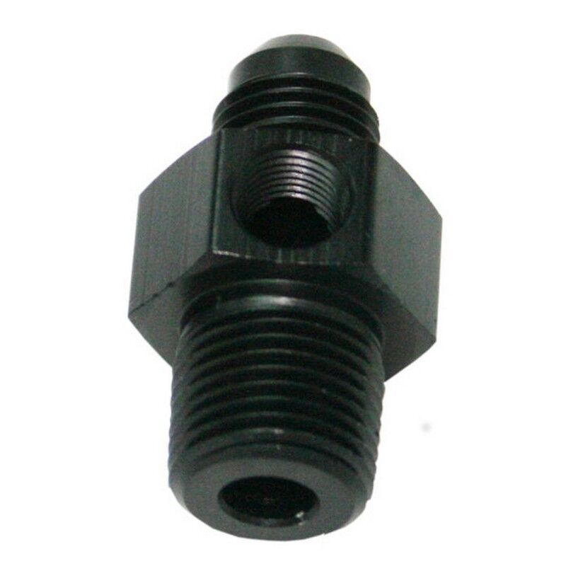 A simple striaght NPT to ANadapter fitting that also features a 1/8 NPT auxilliary port that can be used for sensors, sender units or a gauge. Various sizes available.