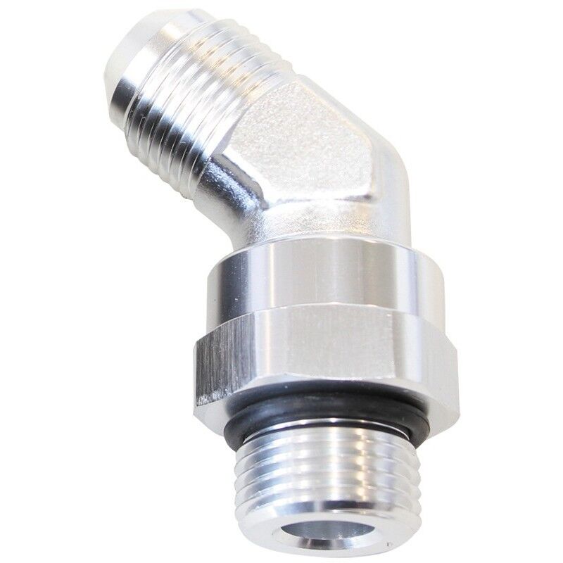 Male to Male full flow ORB to AN adapter. Adapt from an ORB thread to AN flare with a 45 degree bend and full 360 degree swivel. Various sizes available.